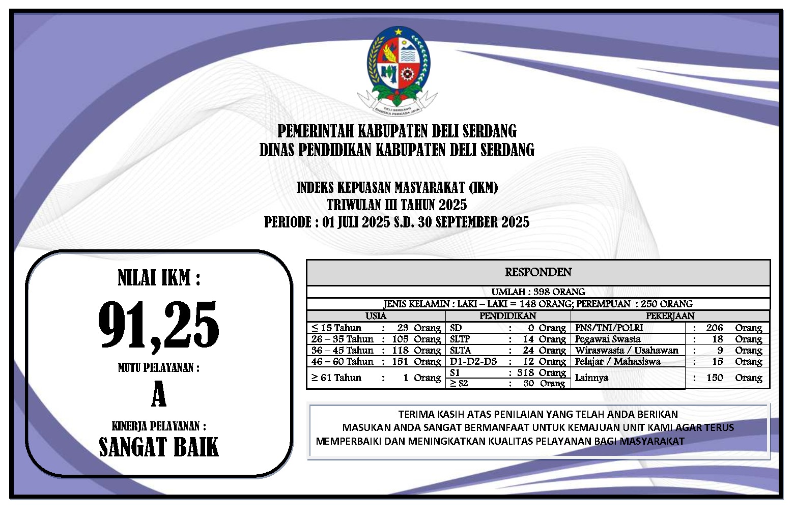 Bupati Deli Serdang, dr. H. Asri Ludin Tambunan, M.Ked(PD),Sp.PD menghadiri dan meresmikan hasil rehabilitasi toilet di Sekolah Dasar Negeri 104230 Desa Tanjung Sari, Kecamatan Batang Kuis, Selasa, 27 Mei 2025. Kegiatan ini merupakan bagian dari implementasi program unggulan Pendidikan Murah dan Berkualitas (PEMULA), yang menjadi prioritas dalam visi dan misi Bupati dan Wakil Bupati Deli Serdang.